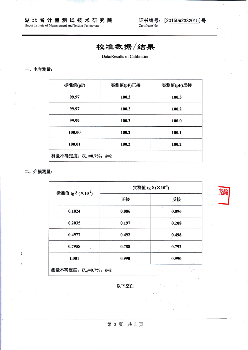 0.001% < tgδ < 100% 內施高壓:3pF~60000pF/10kV 60pF~1µF/0.5kV 外施高壓:3pF~1.5µF/10kV 60pF~30µF/0.5kV |