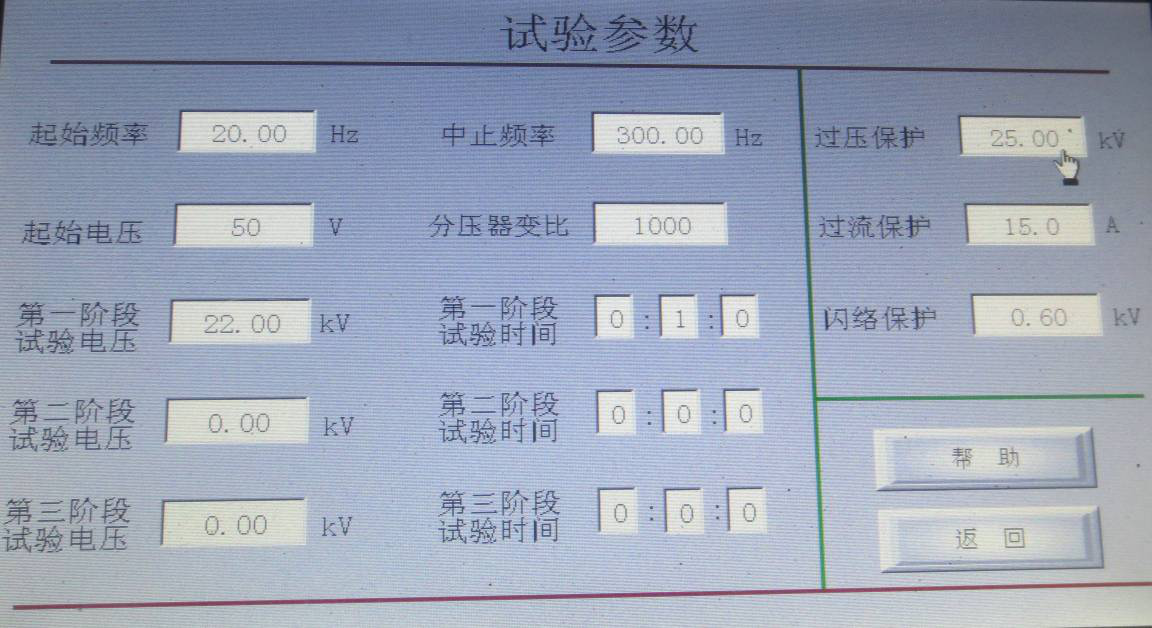 第一階段試驗電壓:設(shè)置試驗電壓的第一階段值。