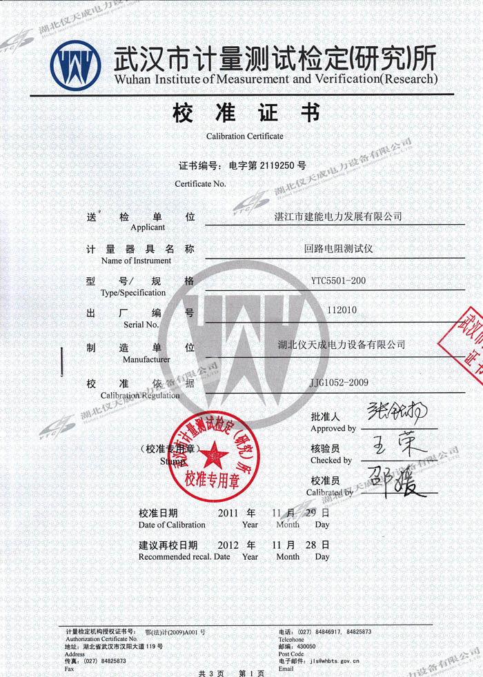 轉(zhuǎn)載:"YTC5501-200A回路電阻測(cè)試儀的資質(zhì)證書" 請(qǐng)注明來(lái)源于儀天成電力。 更多技術(shù)問(wèn)題請(qǐng)致電儀天成電力客戶服務(wù):027-87876585,技術(shù)部專線:027-87876585,在線客服:719388481